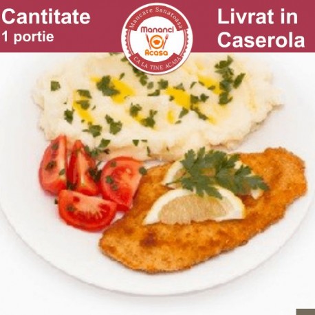 Șnițelul de pui cu piure de cartofi este combinația perfectă dintre crocant și cremos, preparat cu ingrediente proaspete și livrat la tine acasă. O masă echilibrată și delicioasă, ideală pentru prânz sau cină.