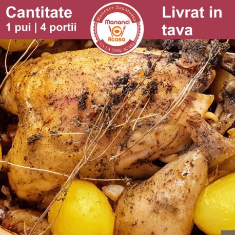 Pui întreg cu cartofi la cuptor – preparat tradițional, livrat la oală în București